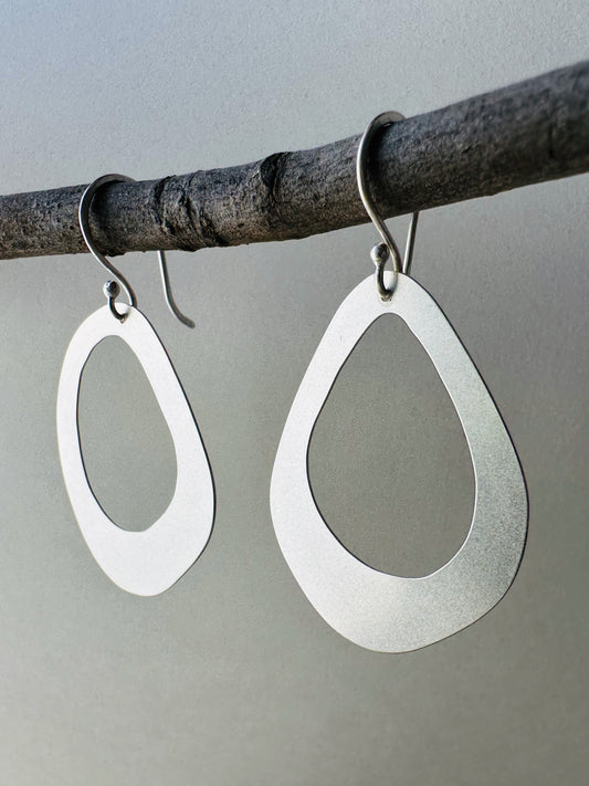 Silver Open Pebble Earrings - Large