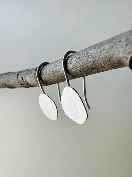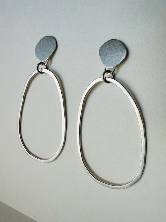 Silver Pebble and Oval Earrings